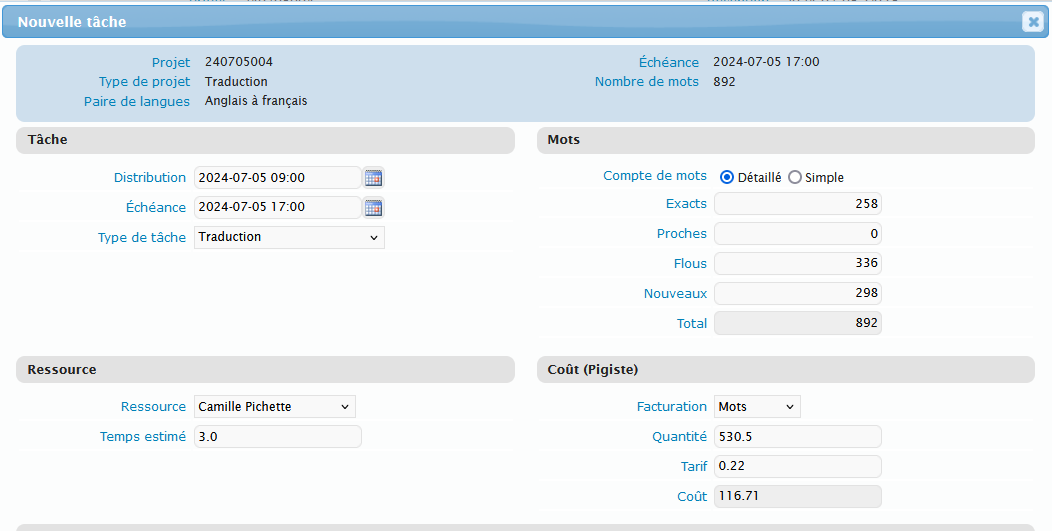The pretranslation task can be automated by integrating your LogiTerm or memoQ pretranslation engine and/or a neural engine such as Systran.